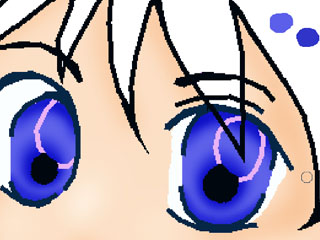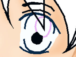 髪の辺りにポチッと塗ってある点は、瞳のベース色と乗算合成した影の色。