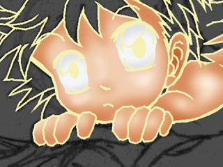 ここでさらに蛮ちゃんの肌の輪郭線の色を調整しました。