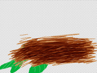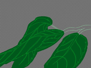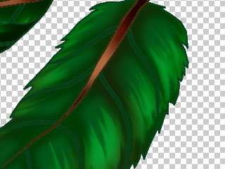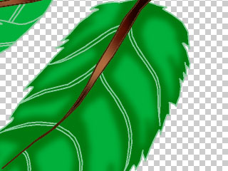 大抵影は乗算合成で同じ色で塗るんですが、葉っぱは濃い色にしたいからあえて別色。