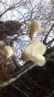たしか、この時期が「こぶし」で、4月末ごろから咲くのが木蓮だったような…。